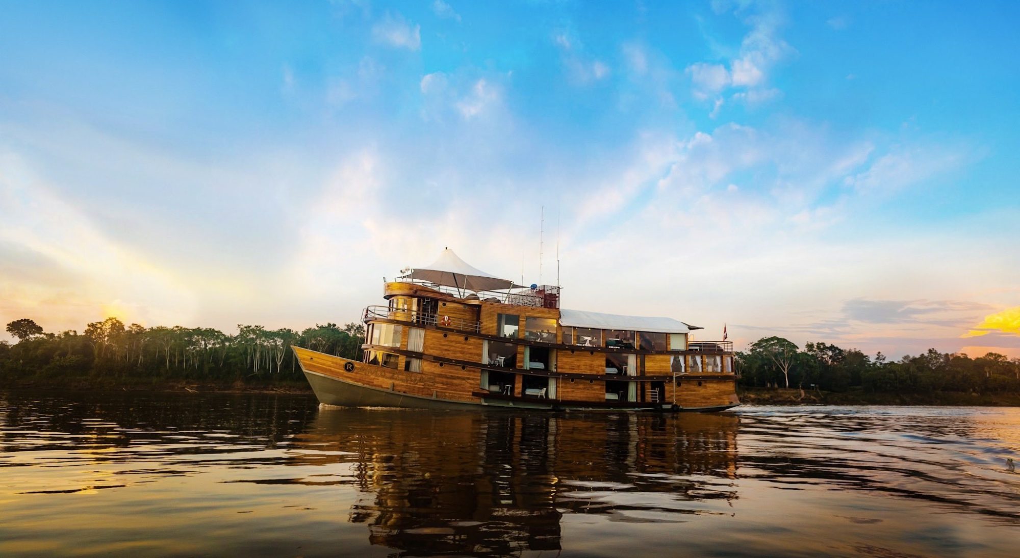 Located on the second deck towards the stern, this space encompasses a total of seven tables with a capacity of up to thirty-six guests. The entire dining room is surrounded by large partitions to enjoy a delicious regional menu and the incredible scenery of the Peruvian jungle.